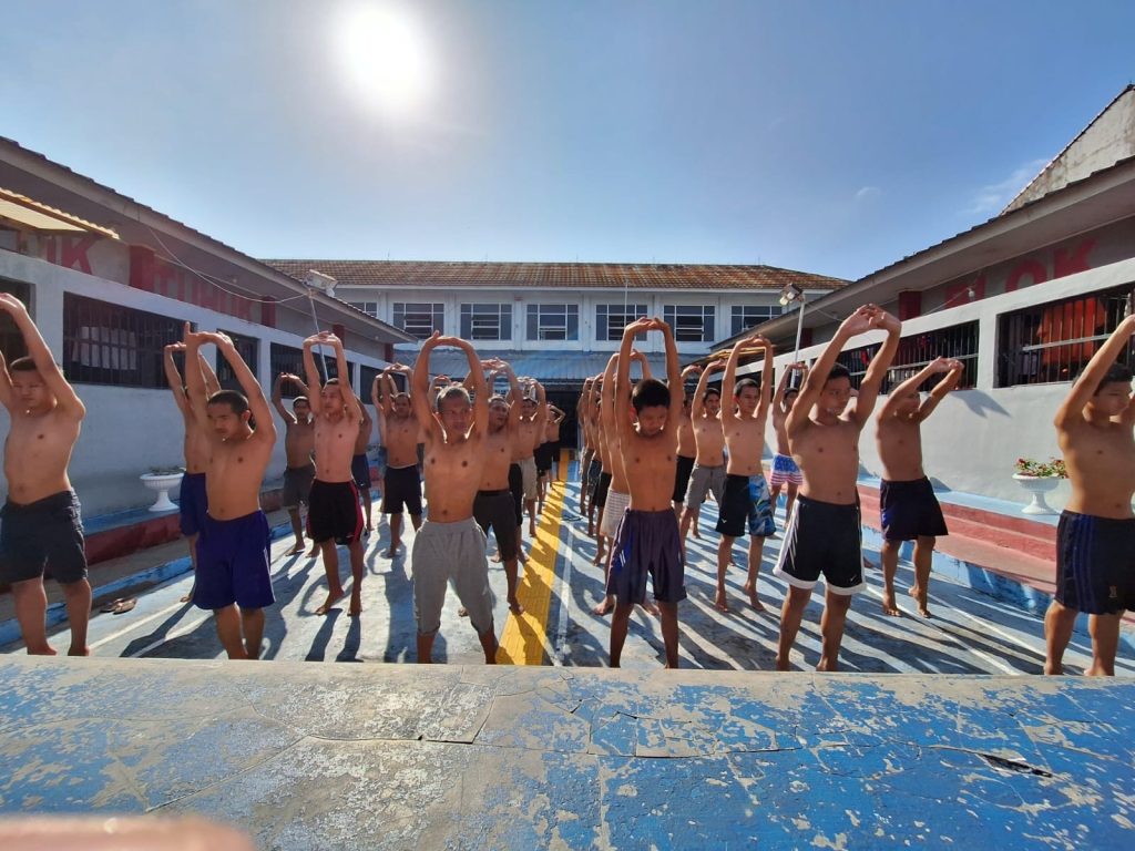 Halamantoday.com, Pesisir Barat– Rumah Tahanan Negara Kelas IIB Krui menggelar kegiatan rutin senam pagi oleh Warga Binaan Pemasyarakatan. Senam bersama ini menjadikan momen bagi Warga Binaan untuk menggerakkan tubuh, merilekskan pikiran serta menjaga kesehatan fisik. Kegiatan berlangsung di Lapangan Rutan Krui, Senin (30/09)