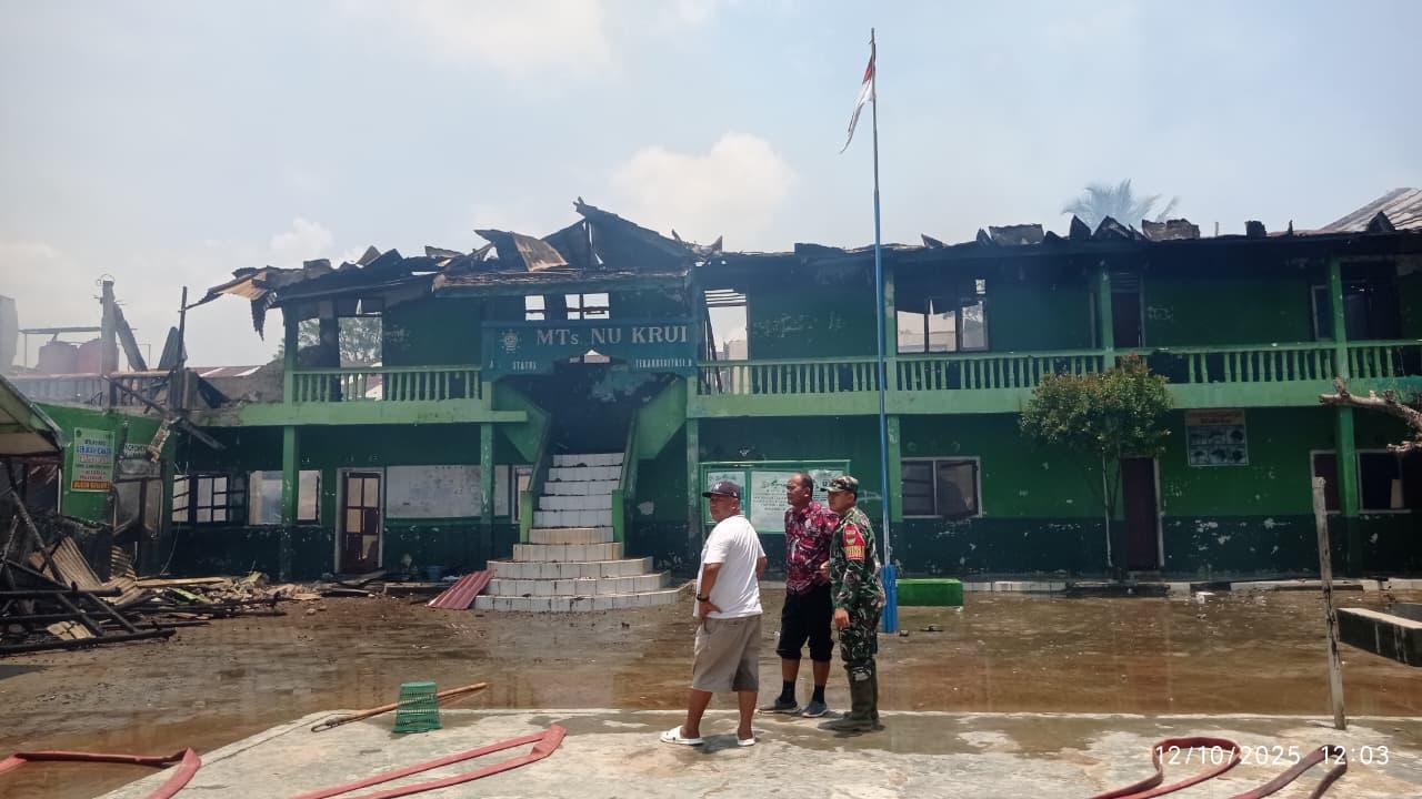 Pesisir Barat, (HalamantodayTV)- Kebakaran hebat melanda Madrasah Tsanawiyah Nahdlatul Ulama (MTs NU) Krui, Kabupaten Pesisir Barat, Lampun, Minggu (12/10/2025) sekira pukul 11.30 WIB.
