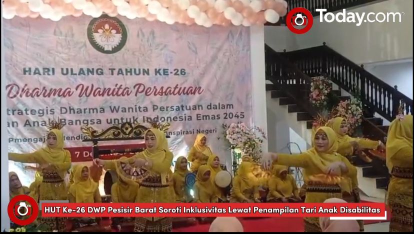 Pesisir Barat, (HalamanTodayTV)– Peringatan Hari Ulang Tahun Dharma Wanita Persatuan (DWP) Pesisir Barat, Lampung diwarnai momen istimewa ketika sekelompok anak-anak disabilitas tampil membawakan pertunjukan tari menggunakan bahasa isyarat di Gedung Marga Sai Batin Pemkab setempat, Senin (8/12/2025).