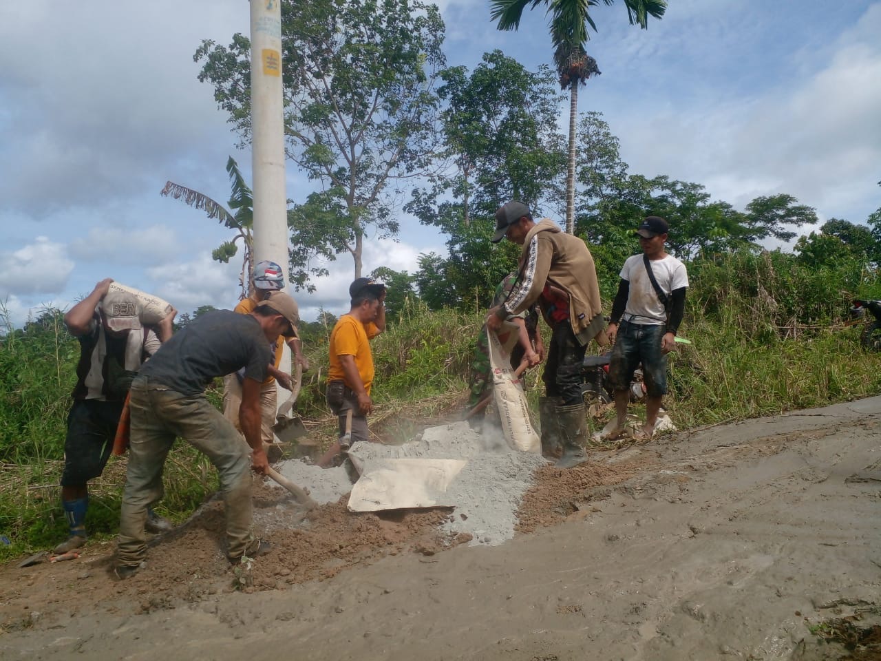 “Gotong royong ini dilaksanakan untuk memperbaiki tanjakan pasir yang berada di antara Pedukuhan Talang Tinggi dan Pedukuhan Binjai,” ujar Nurrohmad.